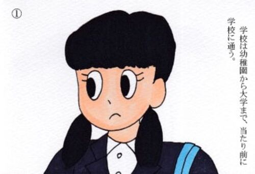 ***出演*** 明子(中3) 智樹(中2) タケオ(18歳・フリーター) カルラ(11歳) (一言) 学校は幼稚園、小学校、中学校、高校、短大、大学まで、当たり前に学校に通います。特に小学校と中学校は義務教育のため、子どもが学校に通うことが義務付け…